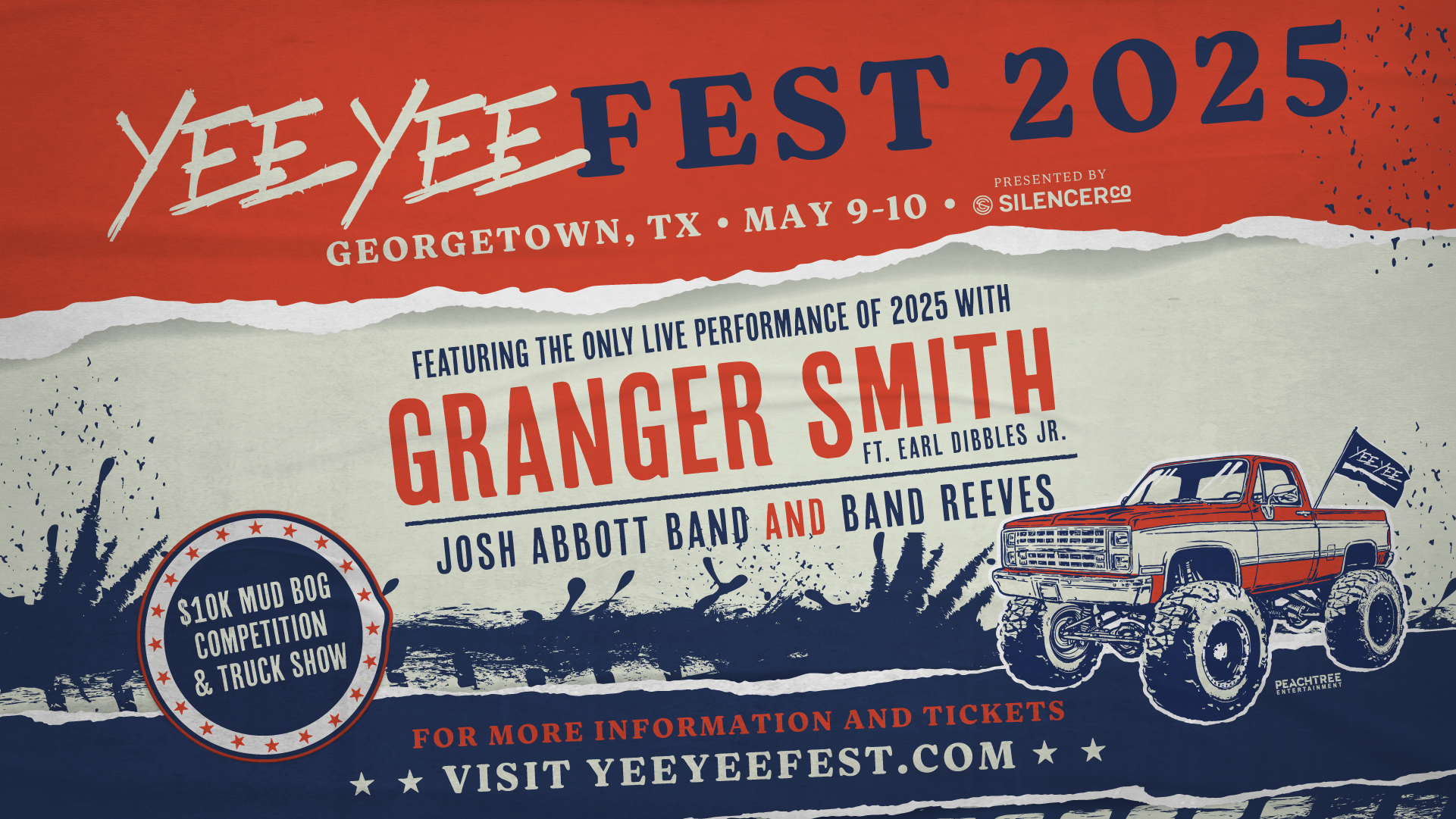 Yee Yee Fest isn’t just an event—it’s a full-throttle celebration of trucks, mud, and country music, all packed into an unforgettable weekend. From high-octane truck shows to adrenaline-pumping mud bogging, the action never stops. Fans can experience exclusive moments with Granger Smith, dive into epic additional music entertainment, and cap it all off with Granger’s only live performance of 2025. Whether you’re here to show off your ride, get a little muddy, or just soak in the party, Yee Yee Fest is where the true spirit of country meets high-energy fun. Don’t miss out on the wildest weekend of the year!