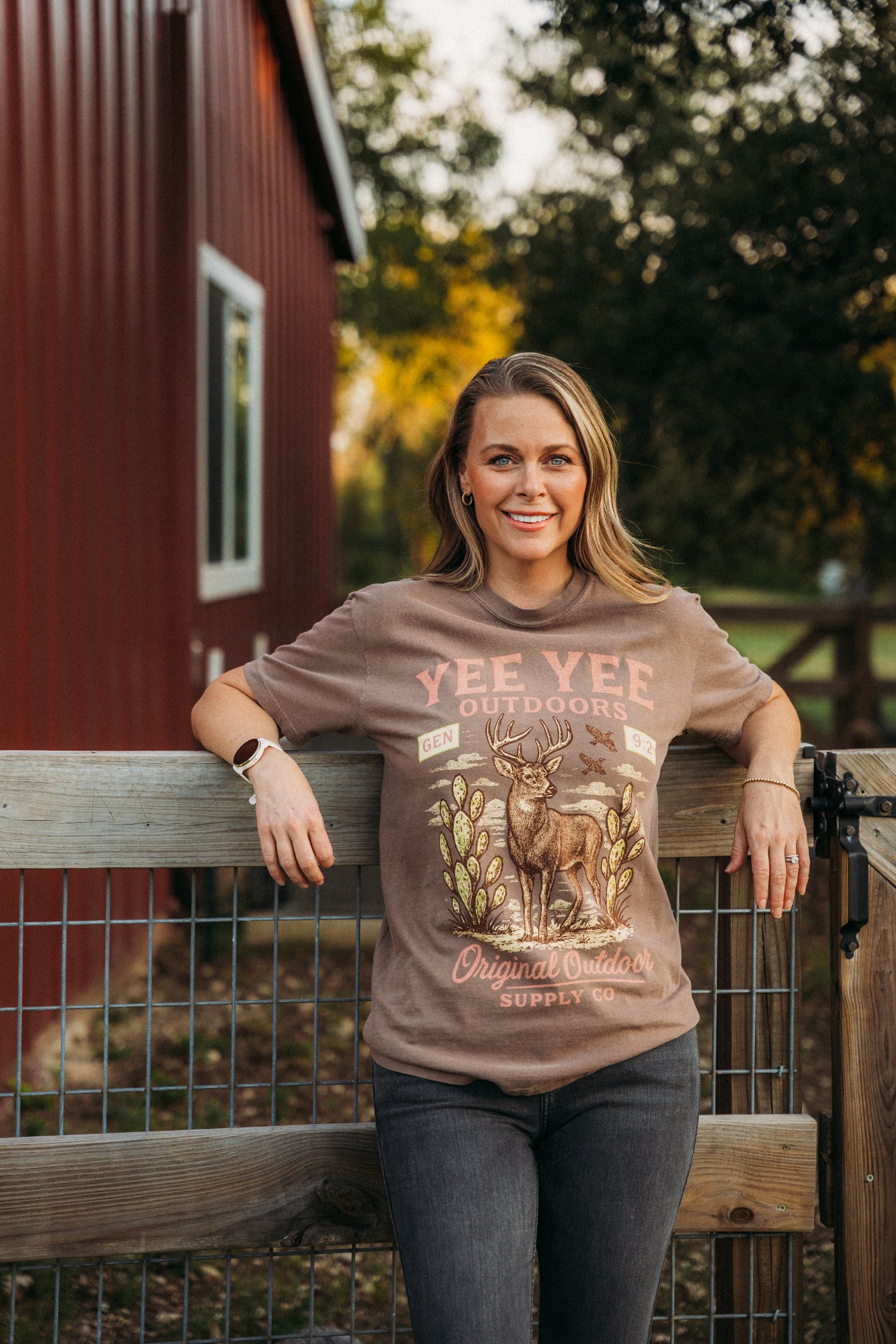 Brianna R. (Sarasota, FL, US) Absolutely love this shirt and everything it stands for! Bought it just in time for deer season. Fits true to size for me — I’m 5’5 115lbs wearing size S. I have it tucked in my jeans in the photo, but you can see it’s not a tight shirt which I like. Very happy it’s made with cotton 🤩.