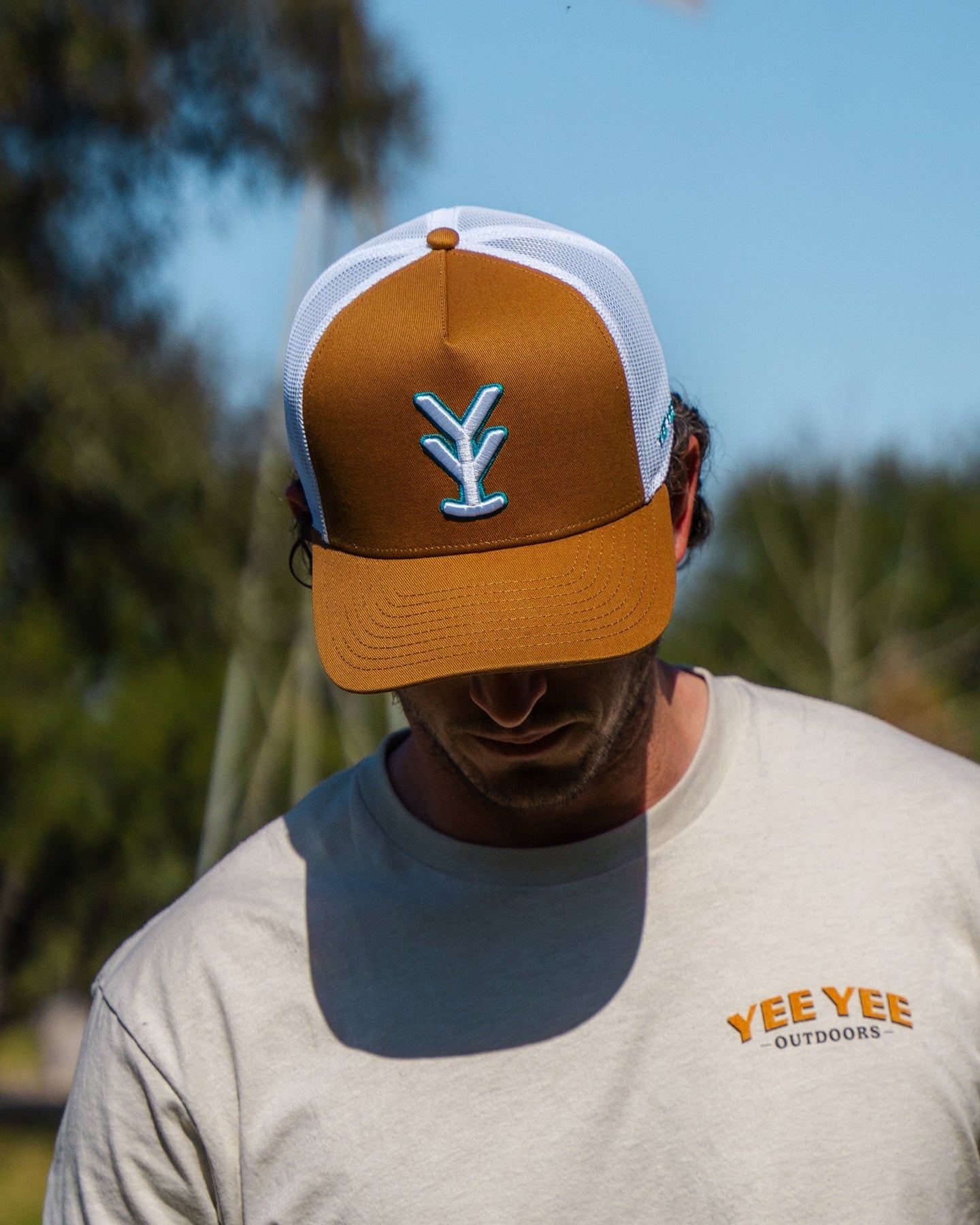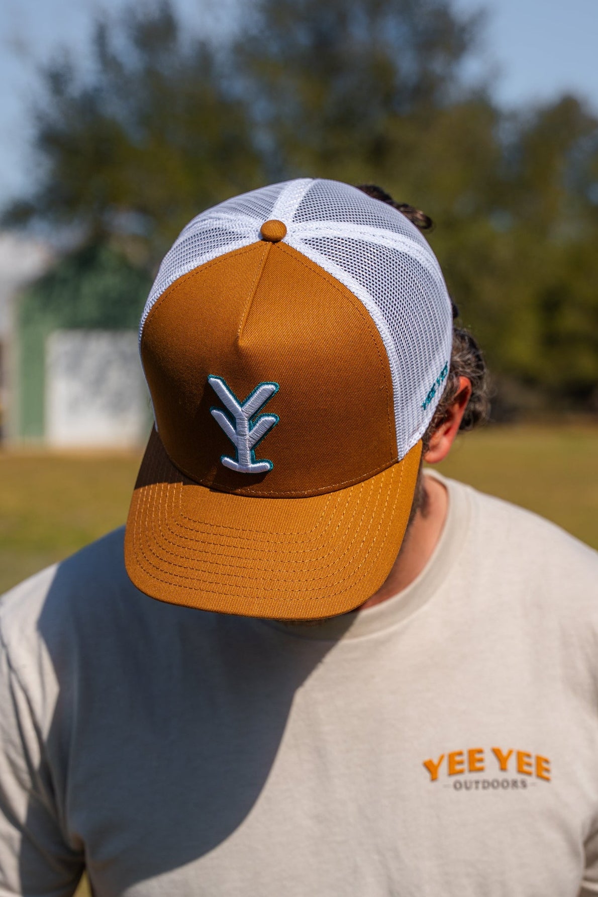 This hat was made with spring in mind. We took our classic Double Y logo and gave it a clean teal outline, then paired it with white mesh to keep things light and fresh. After all, it’s not really spring without a few white mesh hats in the lineup.